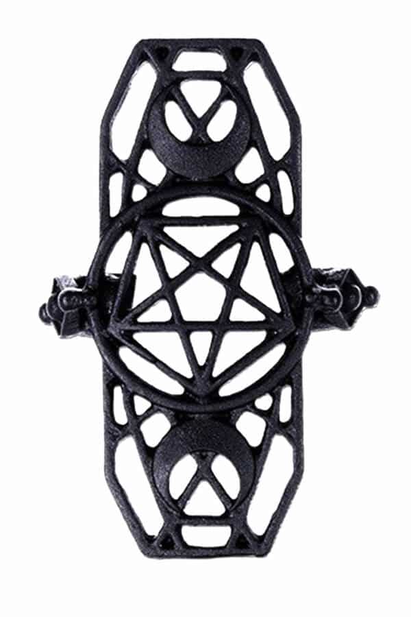 Occult-style ring with pentagram and crescent moons in matt black.