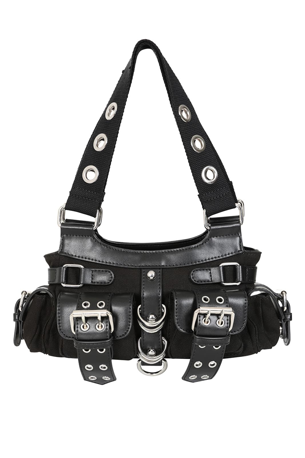 Metallic D-ring accents