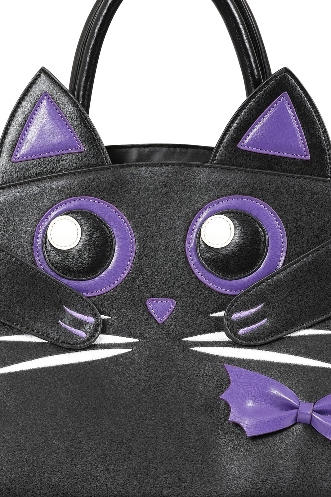 This structured handbag from Banned brings a playful gothic look to your everyday life. With large cat eyes, purple accents and a cute bat-style bow, it is a real eye-catcher. The bag offers enough space for your essentials and can be carried elegantly in the hand or practically over the shoulder thanks to the detachable shoulder strap. A perfect statement piece for kawaii goth and alternative outfits.