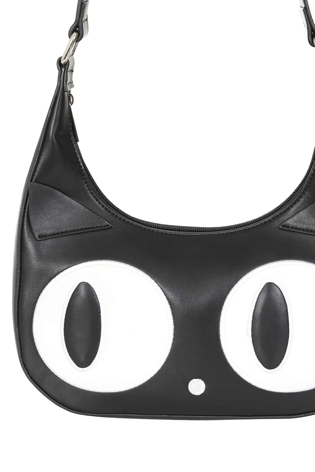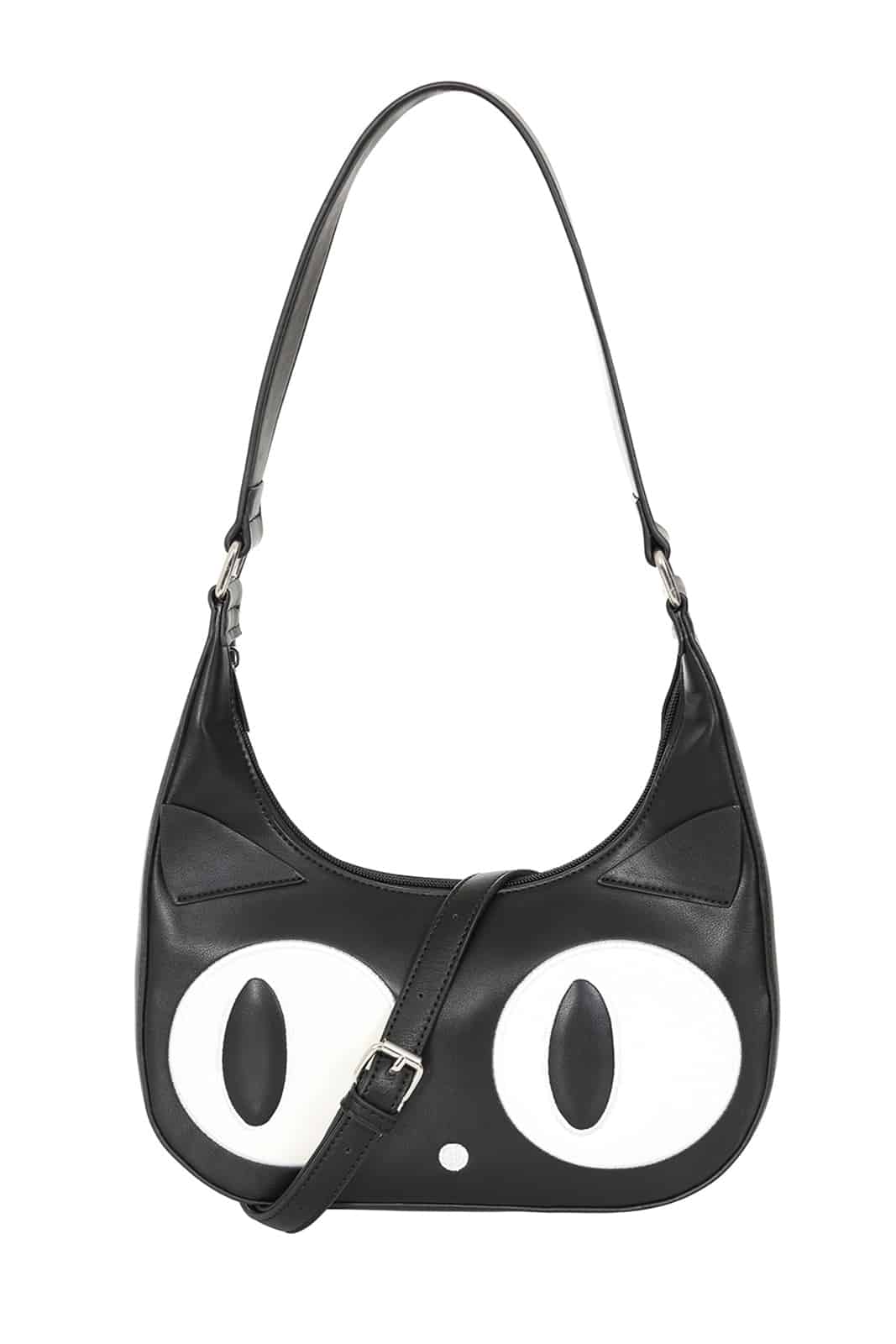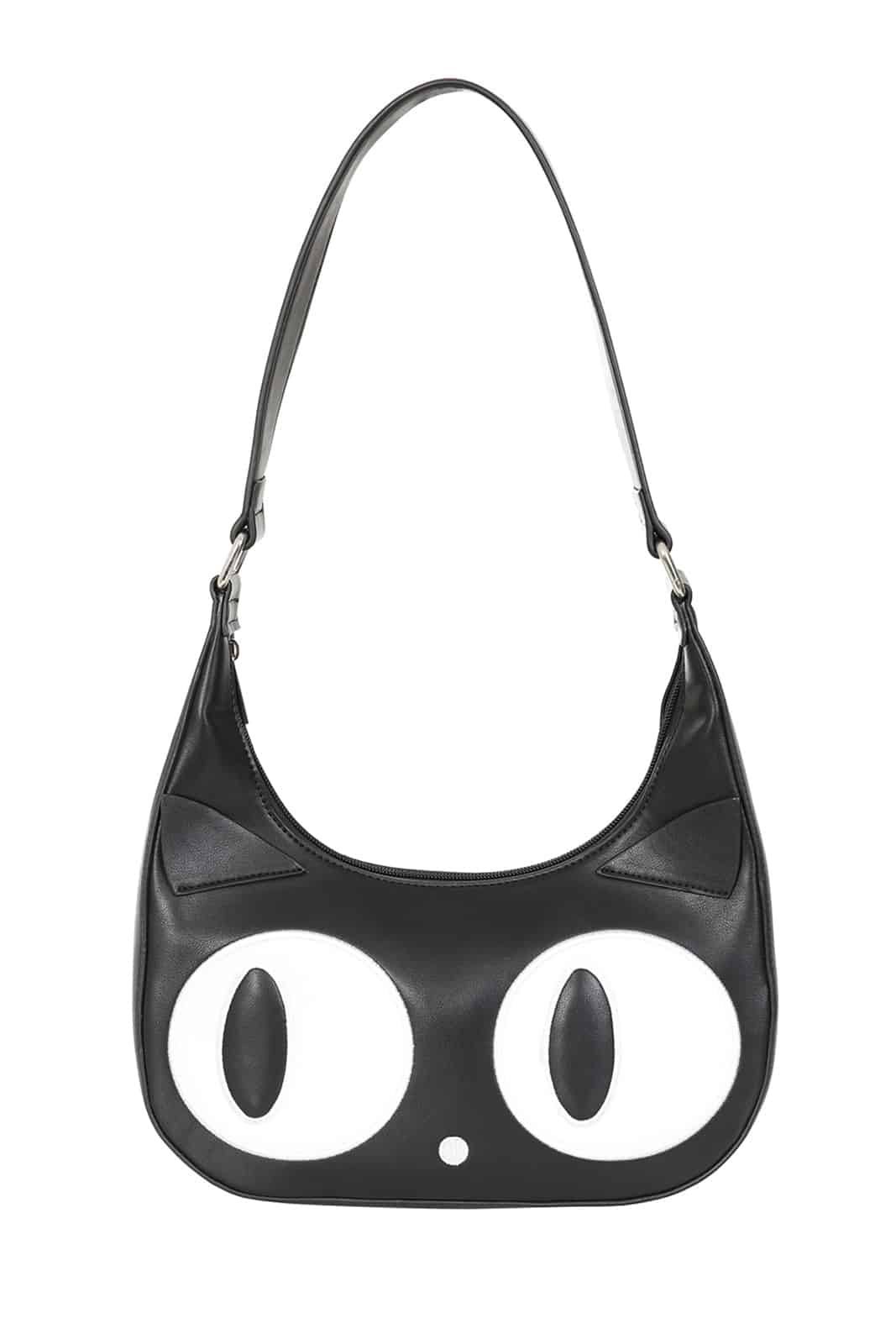 This playful shoulder bag from Banned is a real eye-catcher for cat lovers and fans of kawaii styles. The design features a cute cat face with large white eyes and small ears, which instantly creates a charming look. Made from high-quality faux leather, it combines a playful look with practical functionality and offers enough space for your daily essentials.
