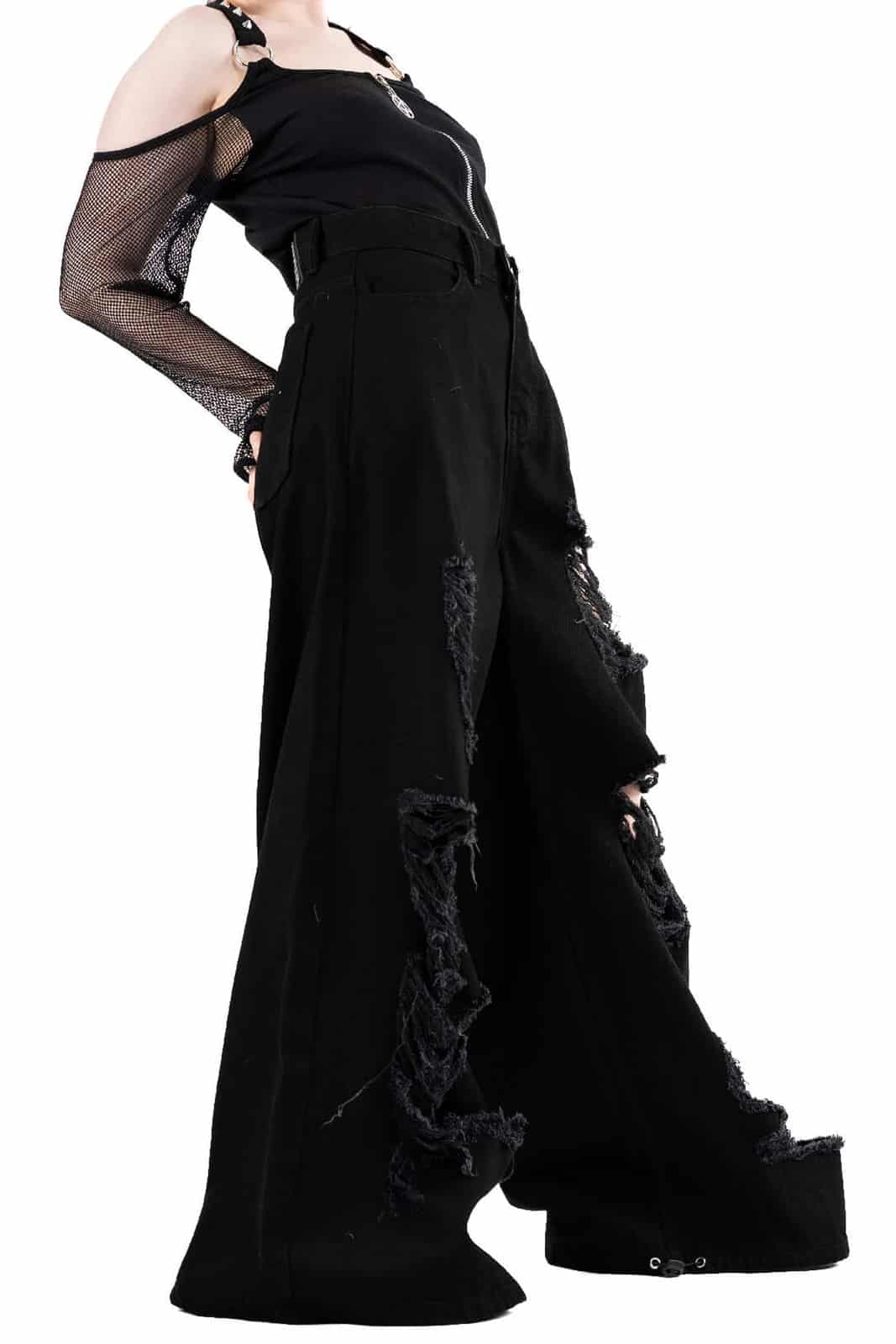 These women’s jeans cut trousers from Chemical Black impress with a striking gothic look and maximum casualness Made from 100% cotton, they are comfortable to wear and durable The wide cut ensures a dramatic style, while the strong destroyed details on the legs underline the rebellious character An absolute must-have for alternative outfitsdetails on the legs underline the rebellious character An absolute must-have for alternative outfits