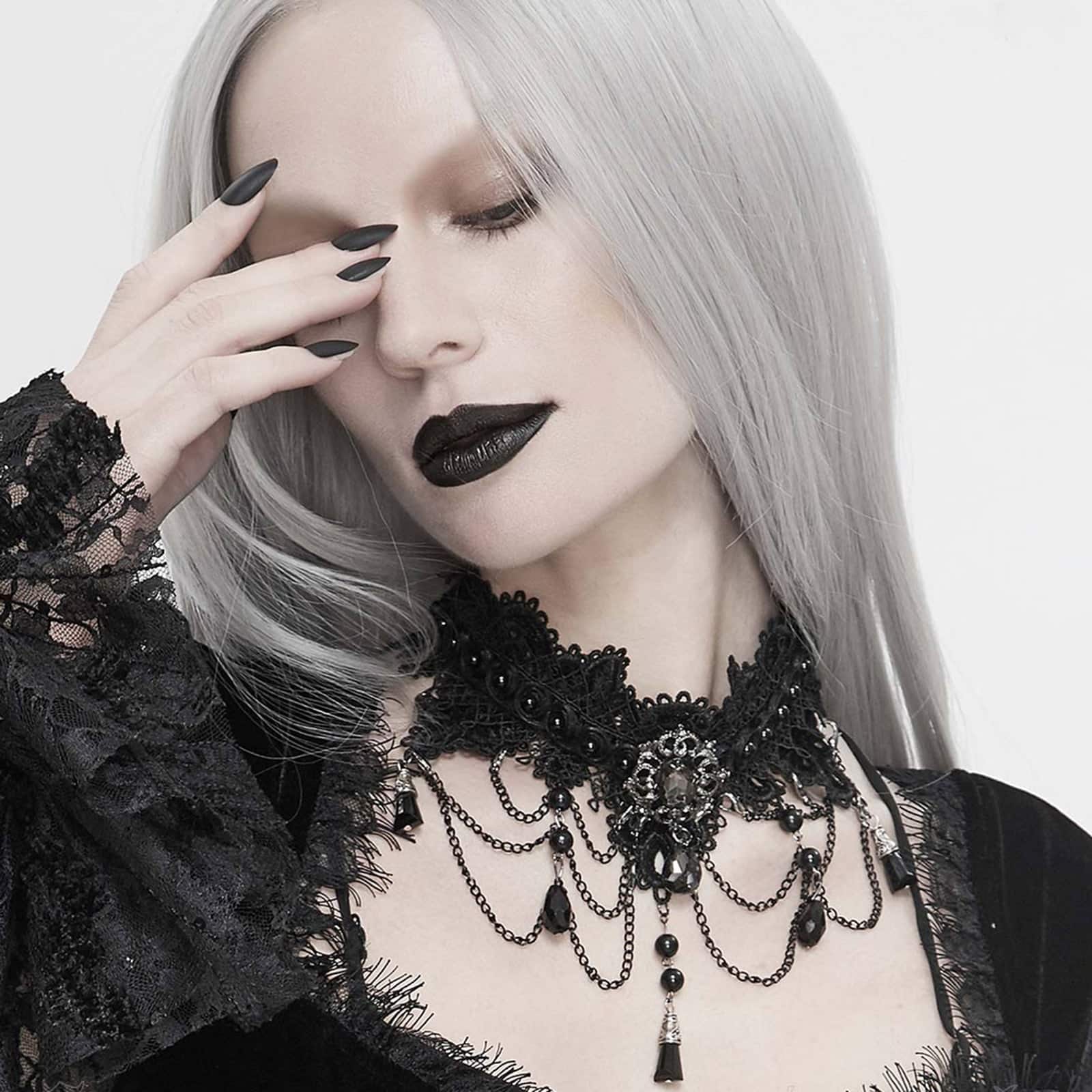 The Gothic Palace stand-up collar is an impressive statement piece for any gothic wardrobe, exuding mystery and grandeur. Inspired by the iconic style of ruffs introduced to the royal court by the Queen of France Marie de’ Medici in the 16th century, the wire-bound piece stands out and frames your neck with power and poise. Flowing ruffles fall from the base of the cape, while the lace-up front adds a seductive and intriguing element to the design. A timeless piece for those who prefer drama in the details.