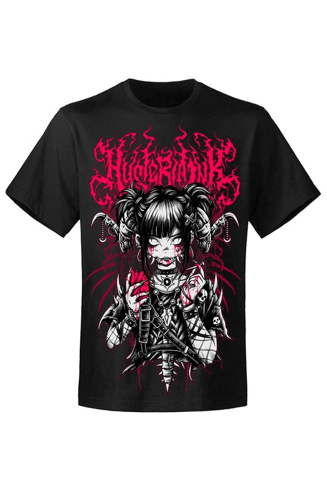 Gothic T-shirt with elaborate front print in occult ink style. Made from pure cotton, short-sleeved, with a round neckline. Unisex.
