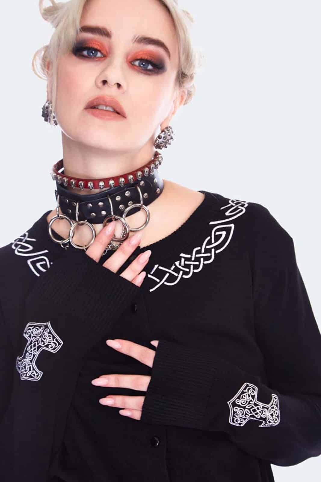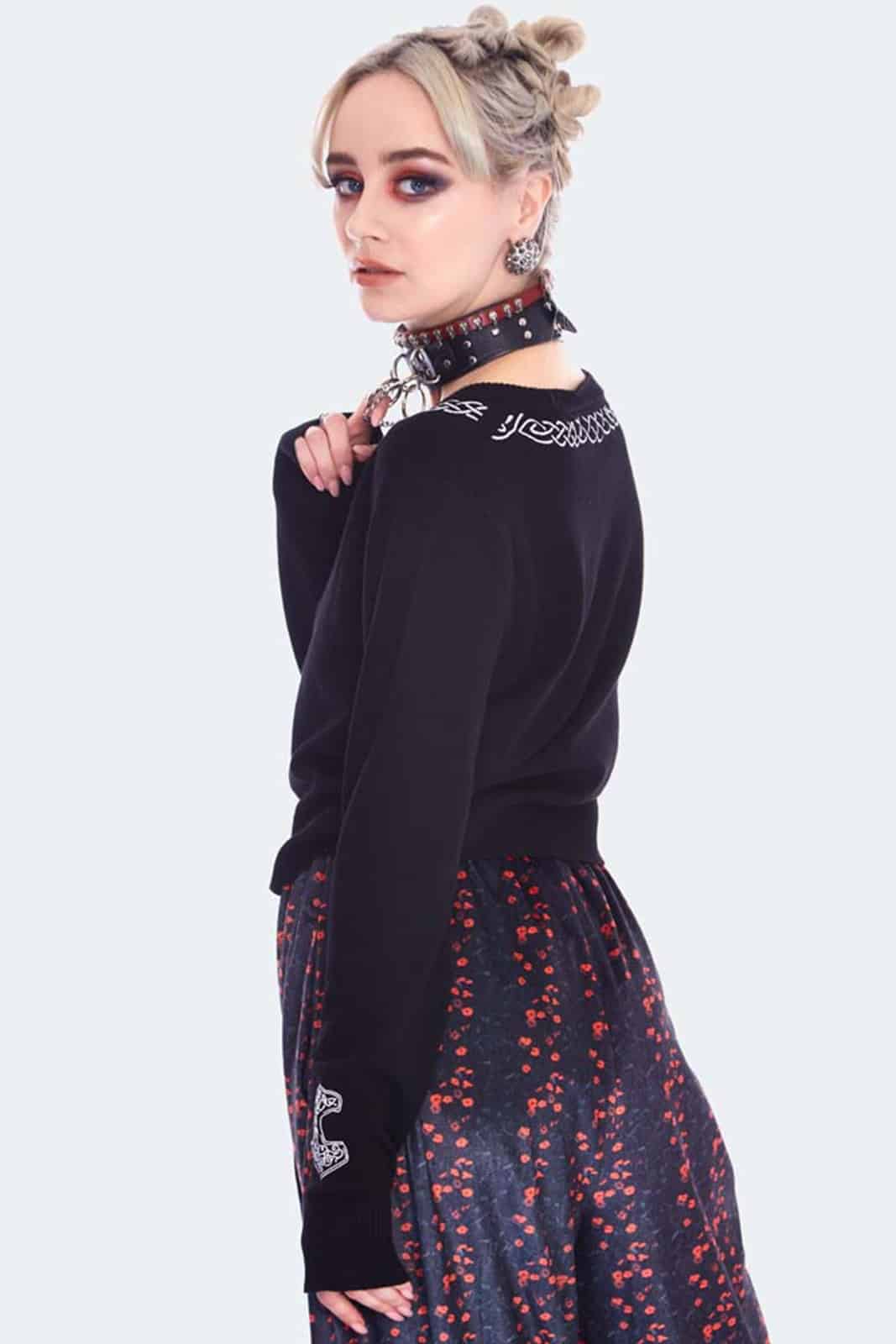 Gothic cardigan inspired by Norse mythology, with long sleeves, button placket and round neckline.