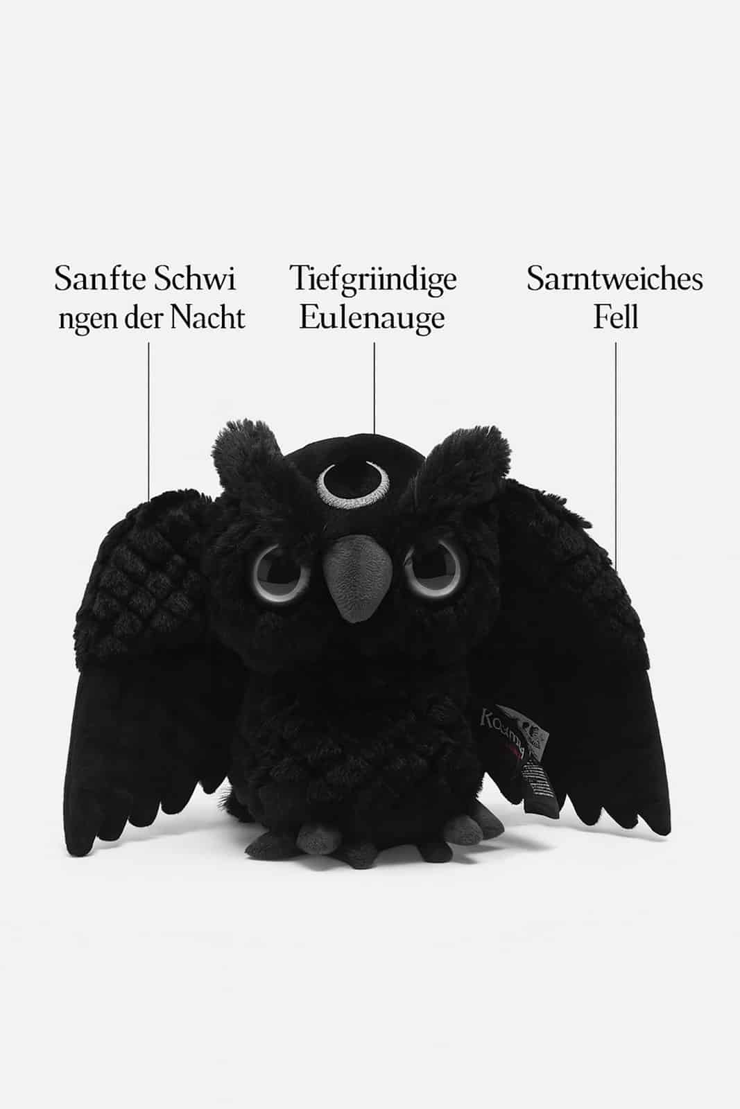 This mystical plush owl brings a touch of magic to your collection. With its deep gazing eyes, the crescent moon on its forehead and its velvety soft fur, it is not just a cuddly toy, but a true companion from the night.