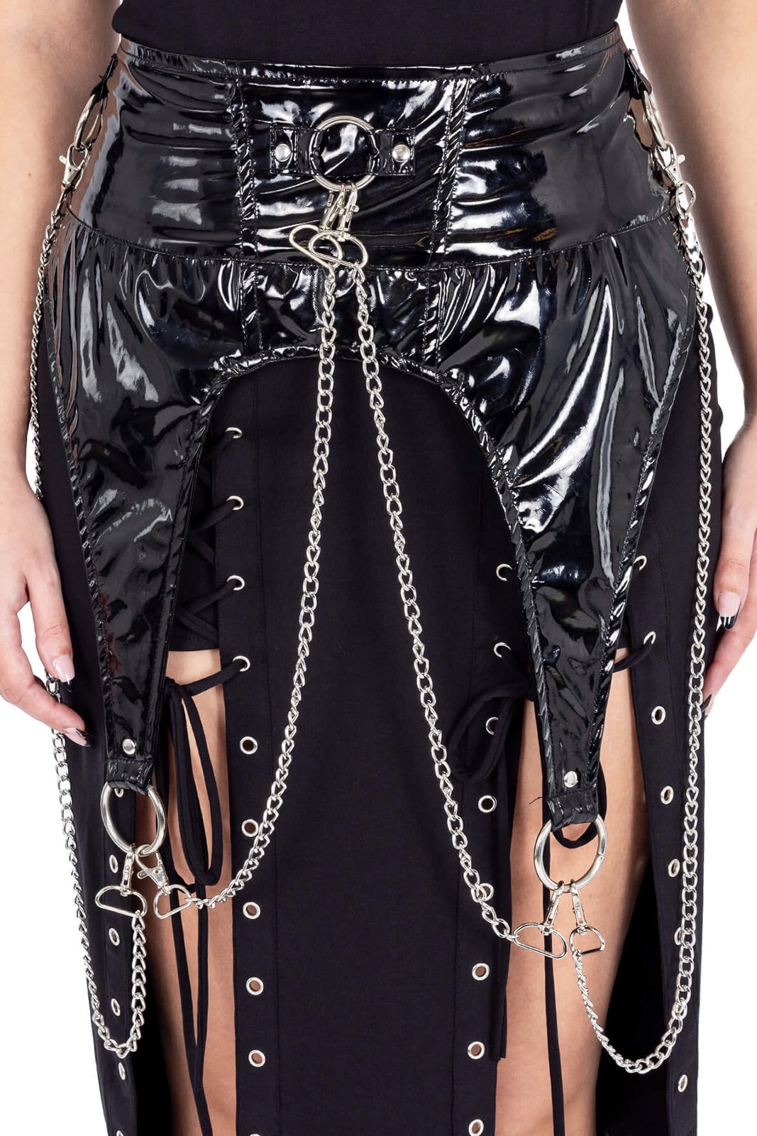 Wide faux leather belt made of durable polyurethane in Viking style with two metal buckles and punched decorations.
