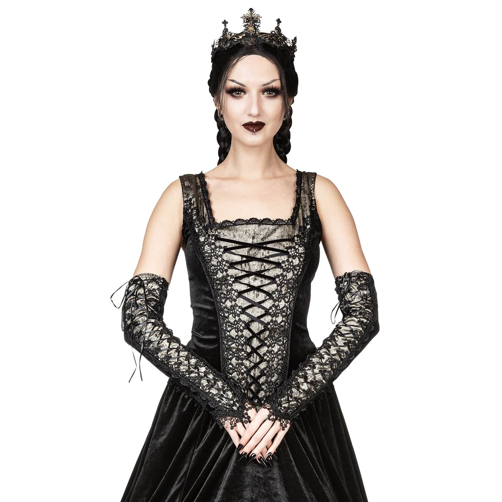 Simple, short gothic mesh gloves.