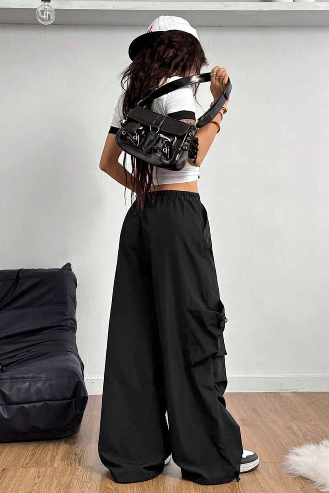 The wide-cut legs give every step an almost silent impact, while the generous cargo pockets look like hidden compartments – ready to carry everything you need between light and night.