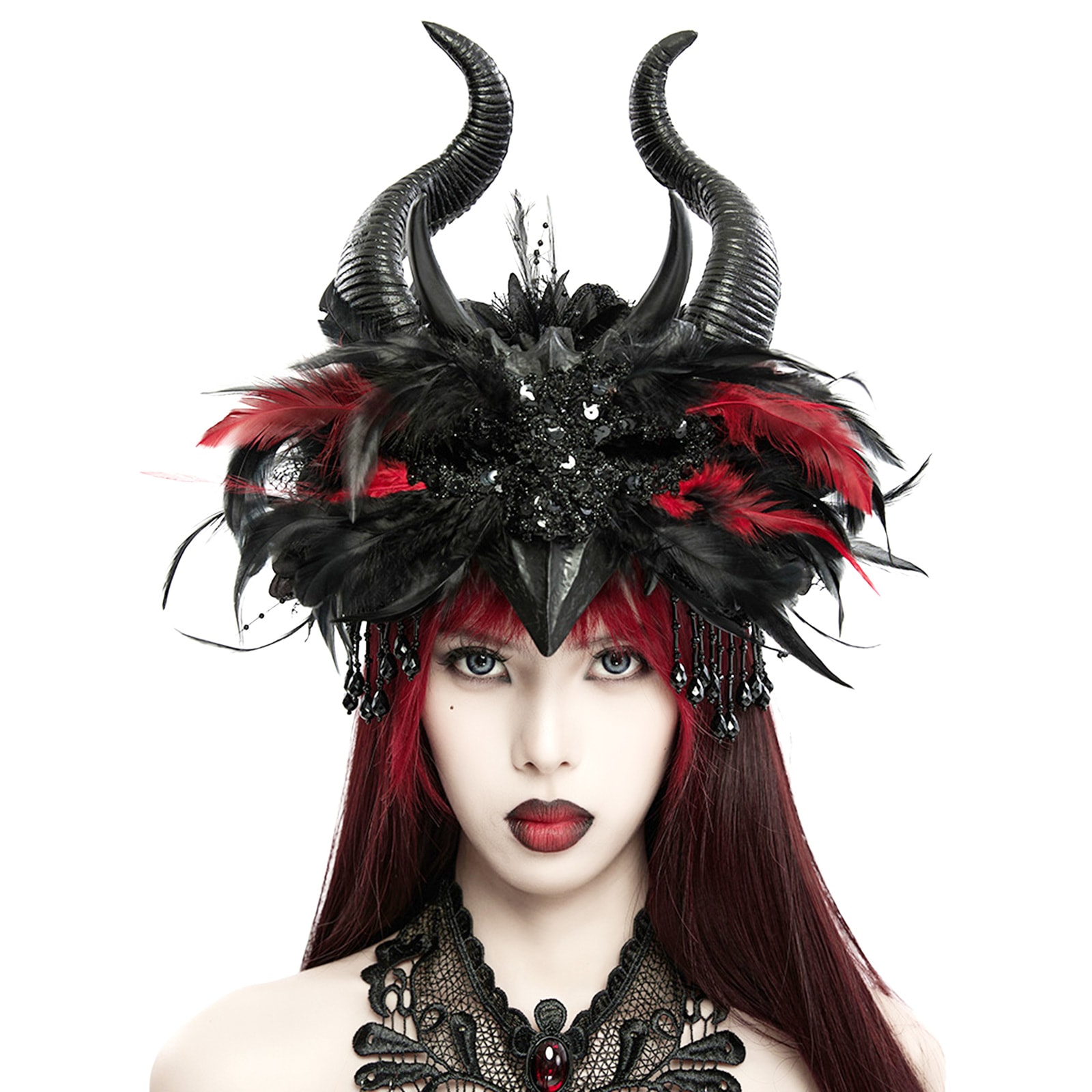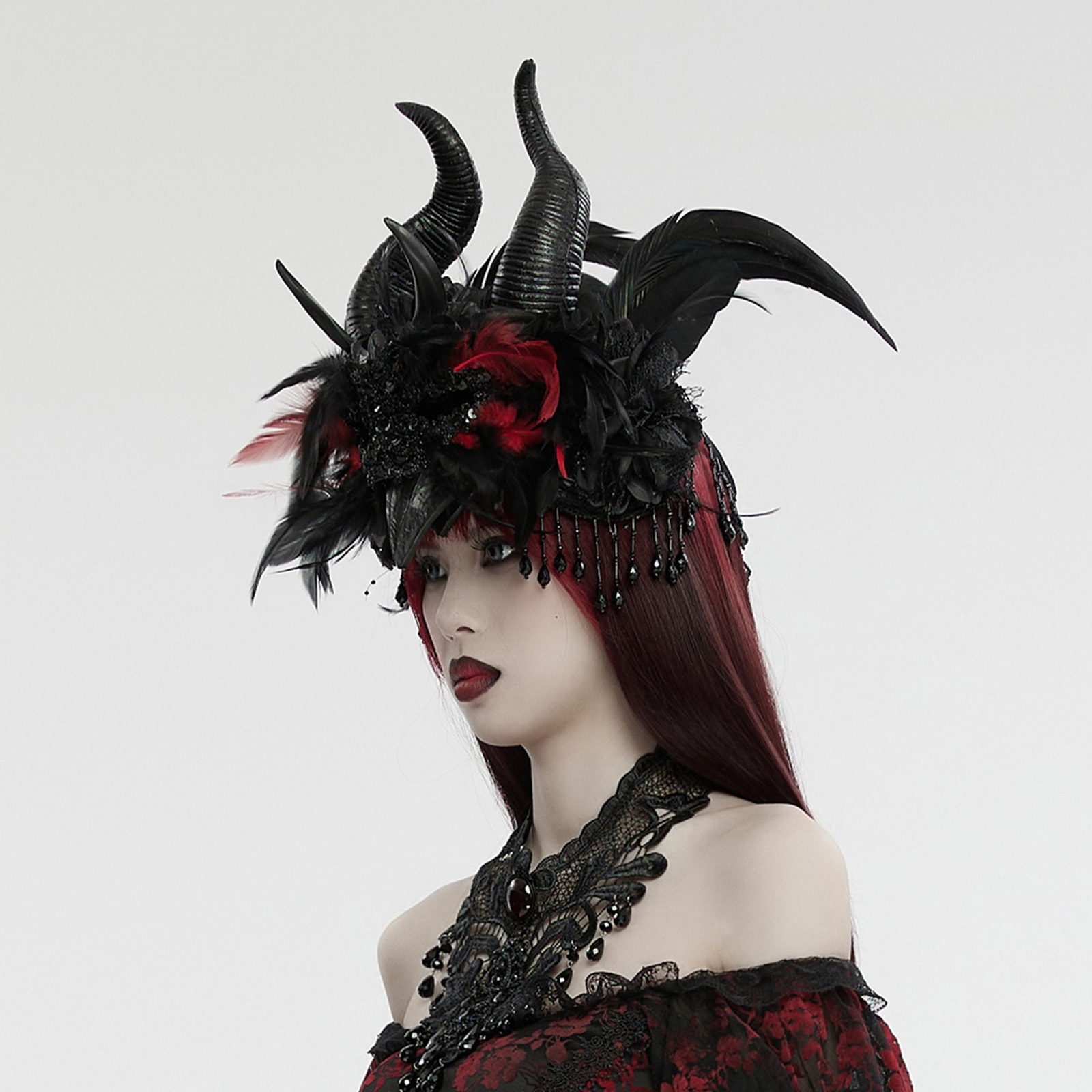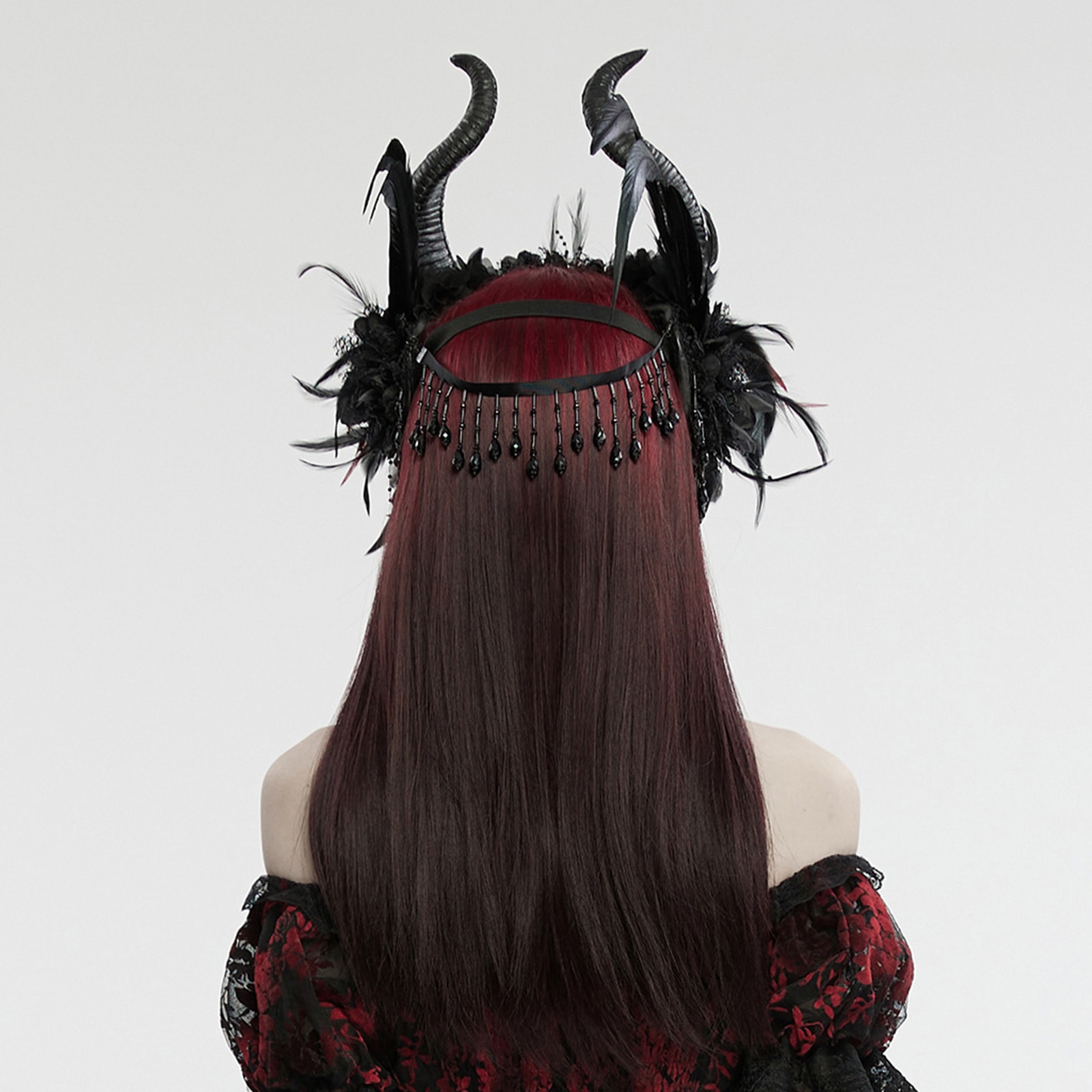 The Vampire Masquerade Headdress is a theatrical masterpiece that conjures up visions of shadowy ballrooms and ancient, moonlit rituals. With its dramatic horns and intricate decorations, this headdress transforms the wearer into a creature of Gothic legends and myths.