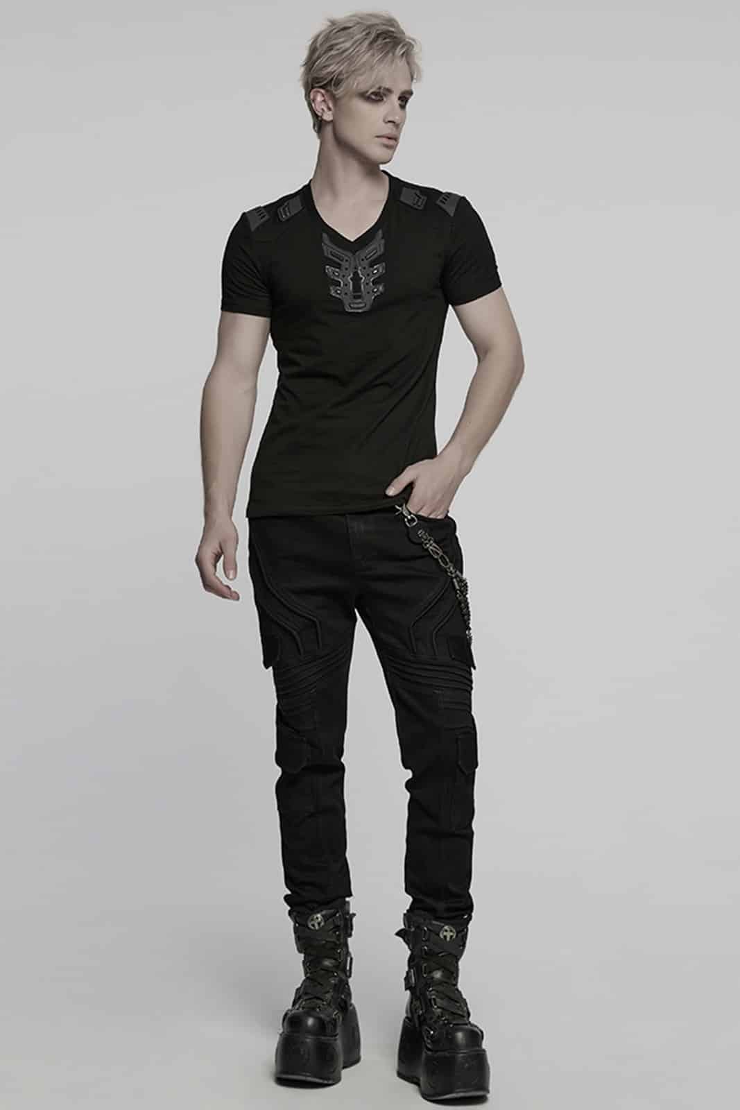 The Master Chief T-shirt from Punk Rave combines military precision and dystopian style. The combination of striking shoulder details, asymmetrical design and the powerful print makes this shirt a real statement for end-time aesthetes. Perfect for anyone who defines their look somewhere between command center and post-apocalyptic street.