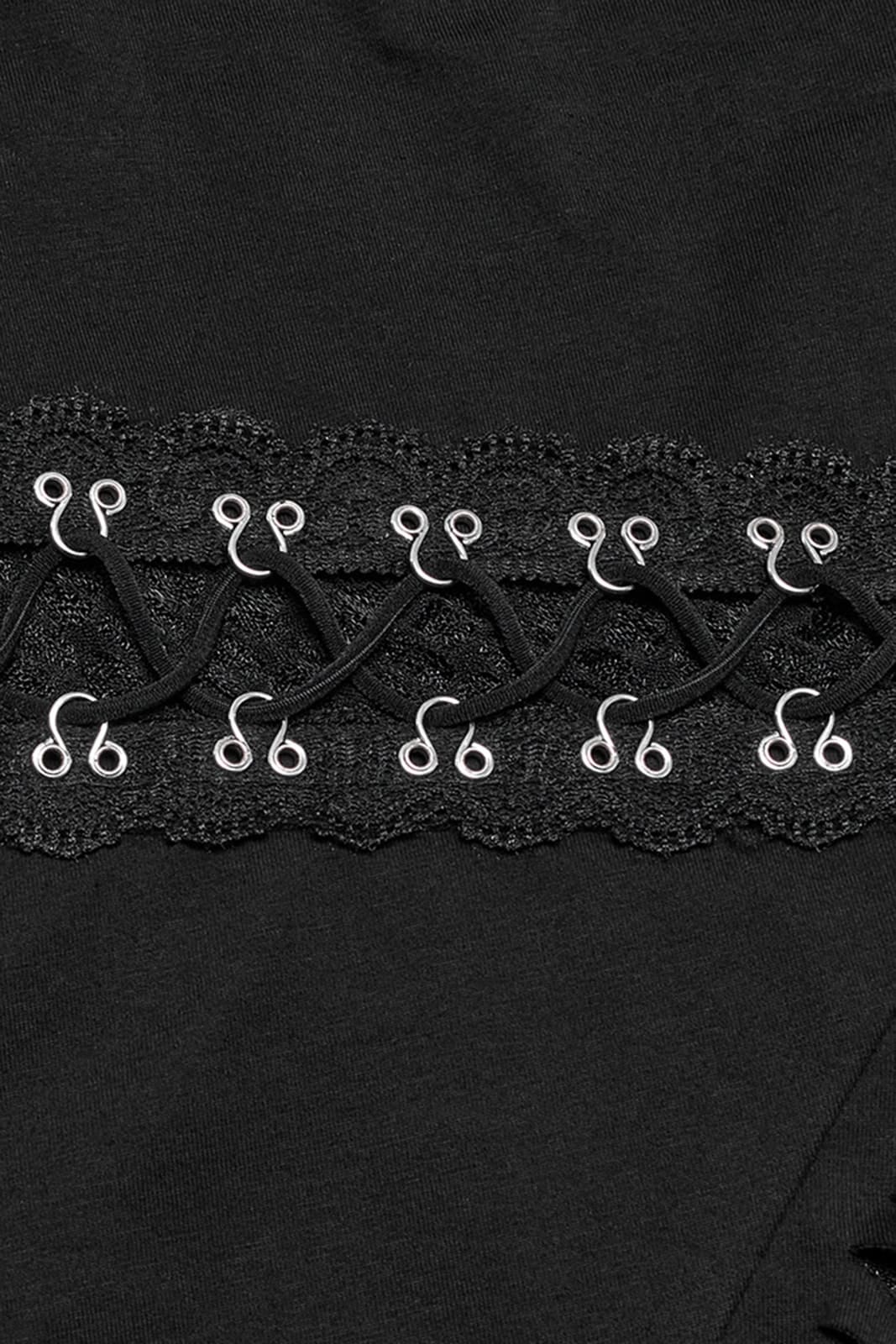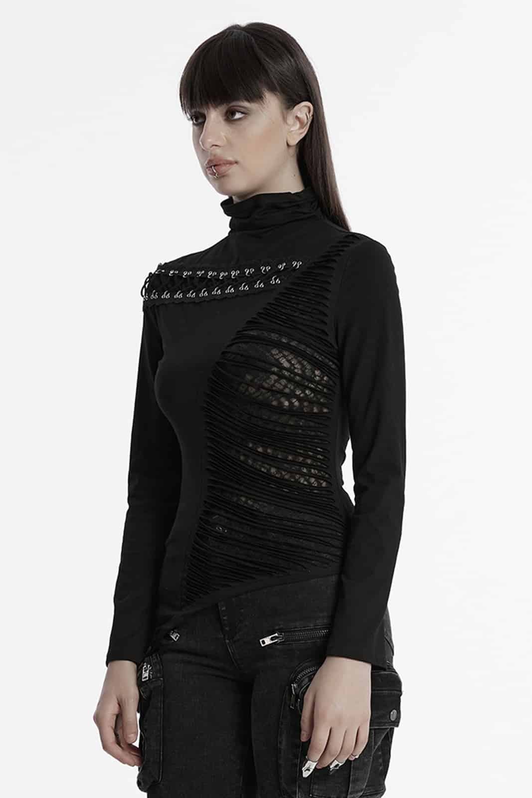 The Murderdoll top from Punk Rave is a figure-hugging gothic top with eye-catching details and an asymmetric design. With its deep V-neckline, lacing and ripped accents, it embodies a dark yet seductive aesthetic. Made from a stretch cotton blend, it offers both comfort and a flattering fit.