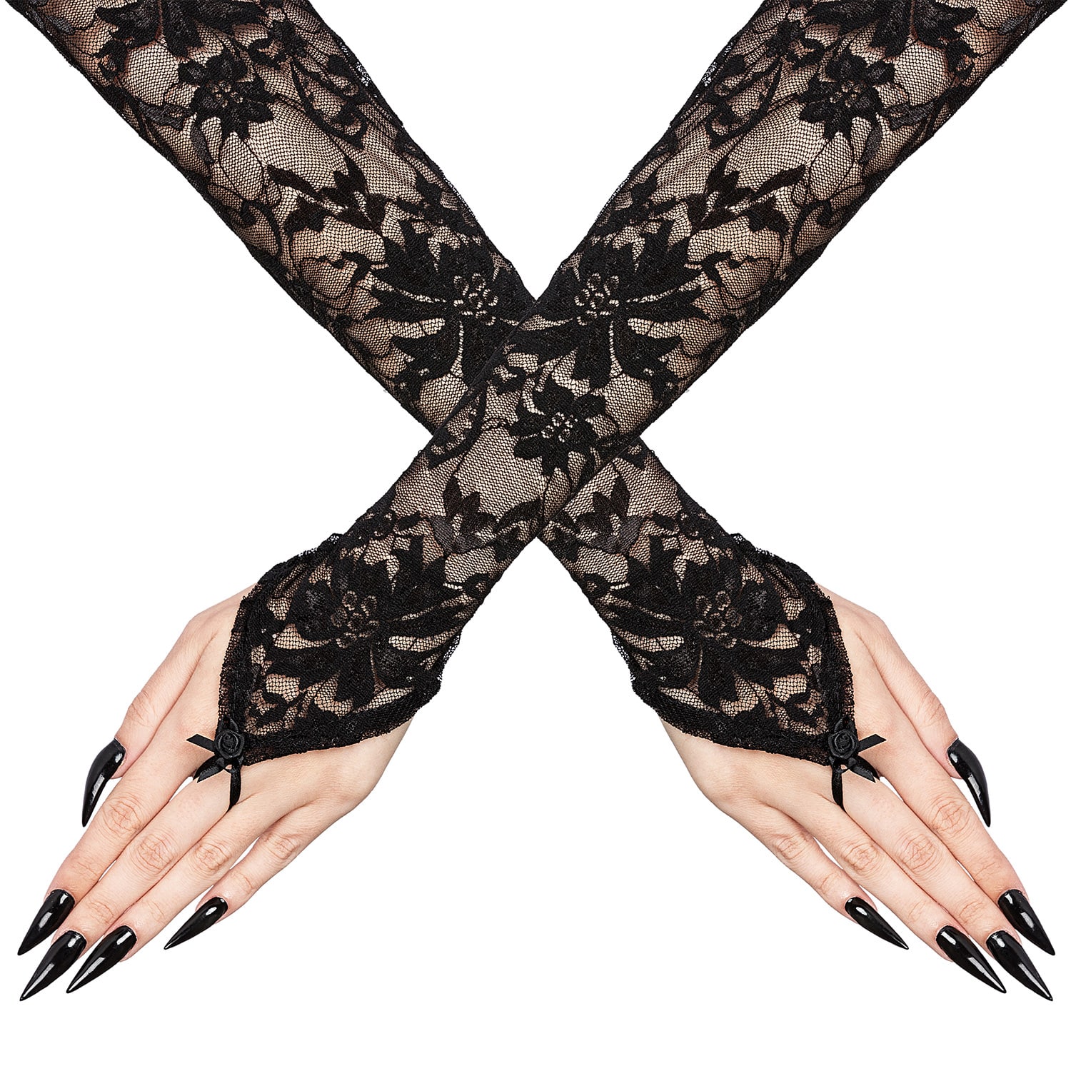 Black gauntlets made of soft jersey decorated with silver-colored pyramid studs.