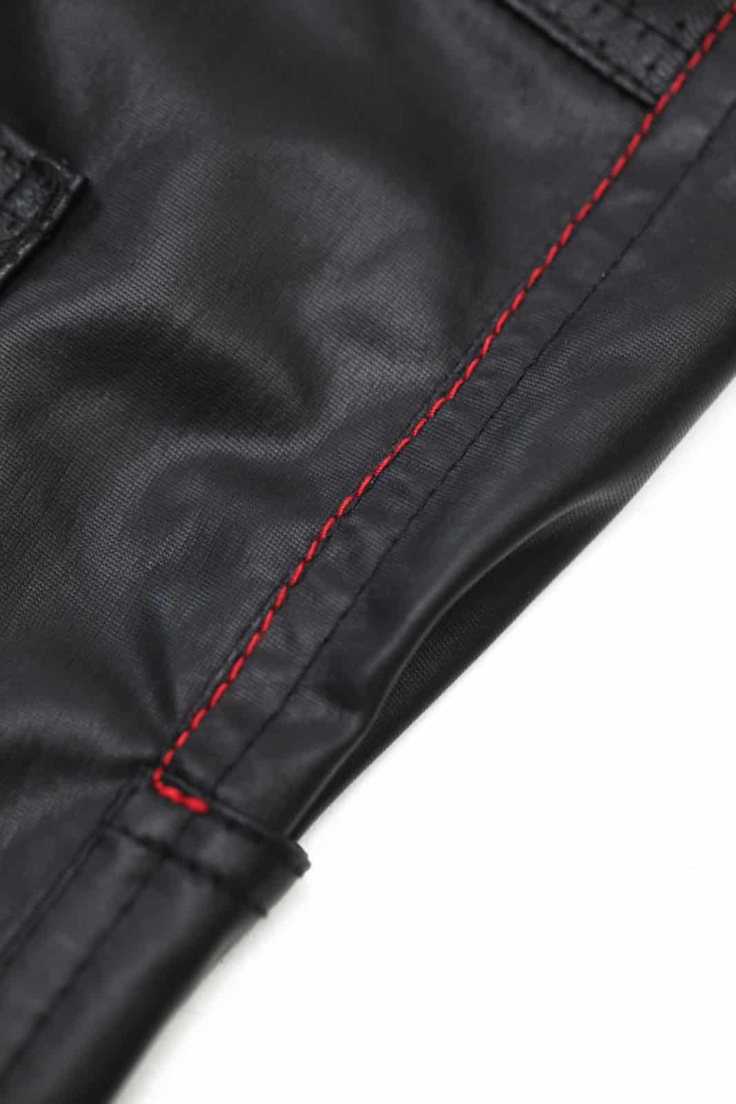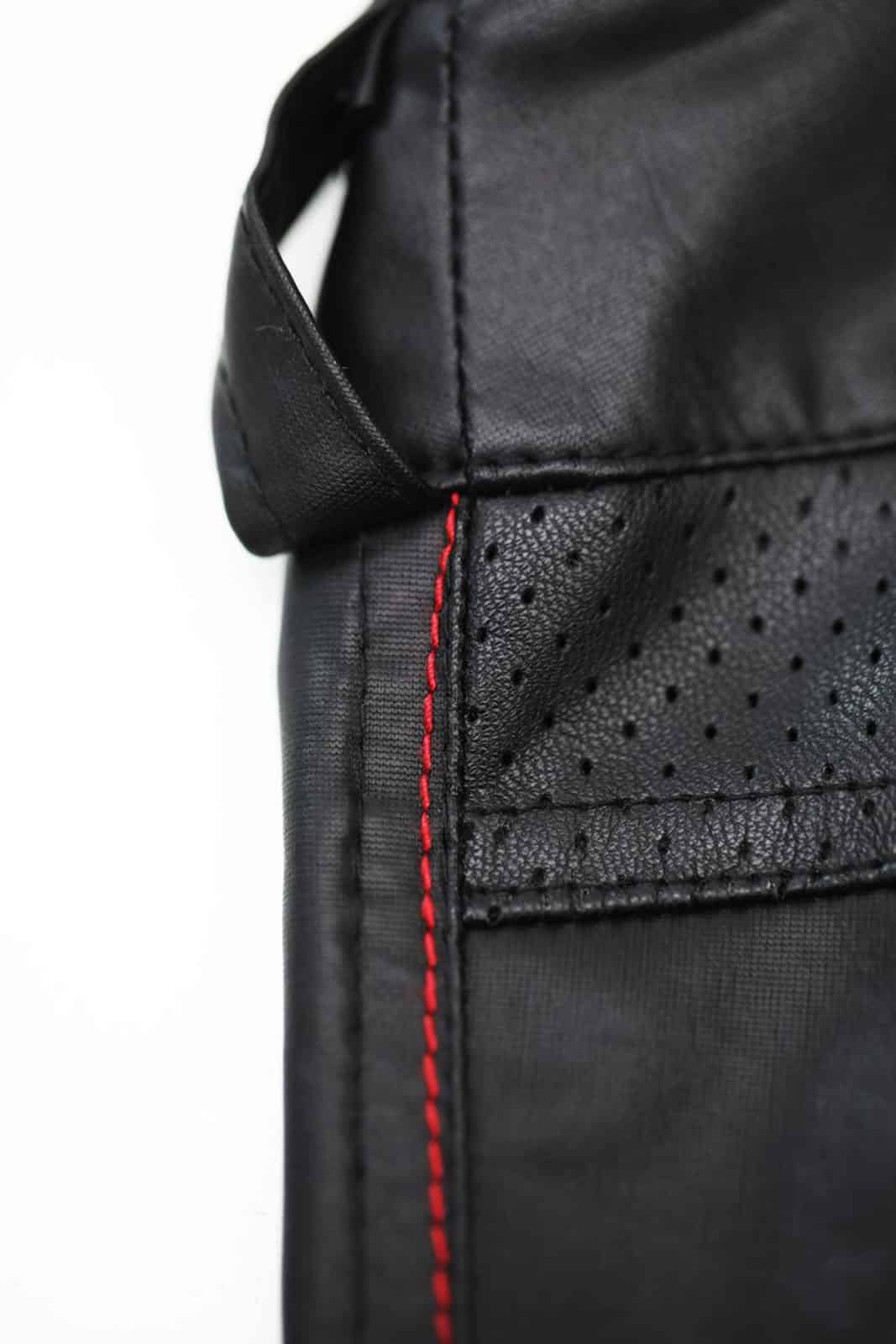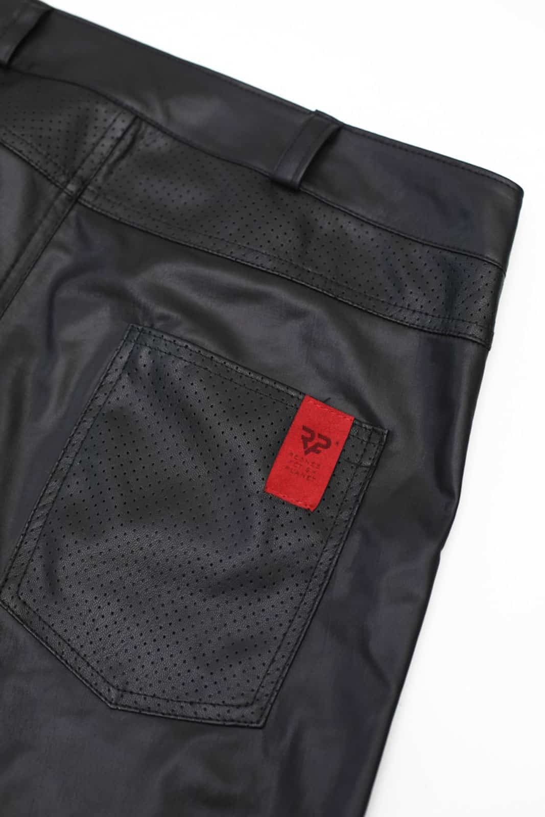 The trousers have belt loops for wearing a belt. The distinctive red Alcantara label with RFP logo, pockets made of perforated material and dot red stitching – will delight anyone who appreciates refined and unique details.