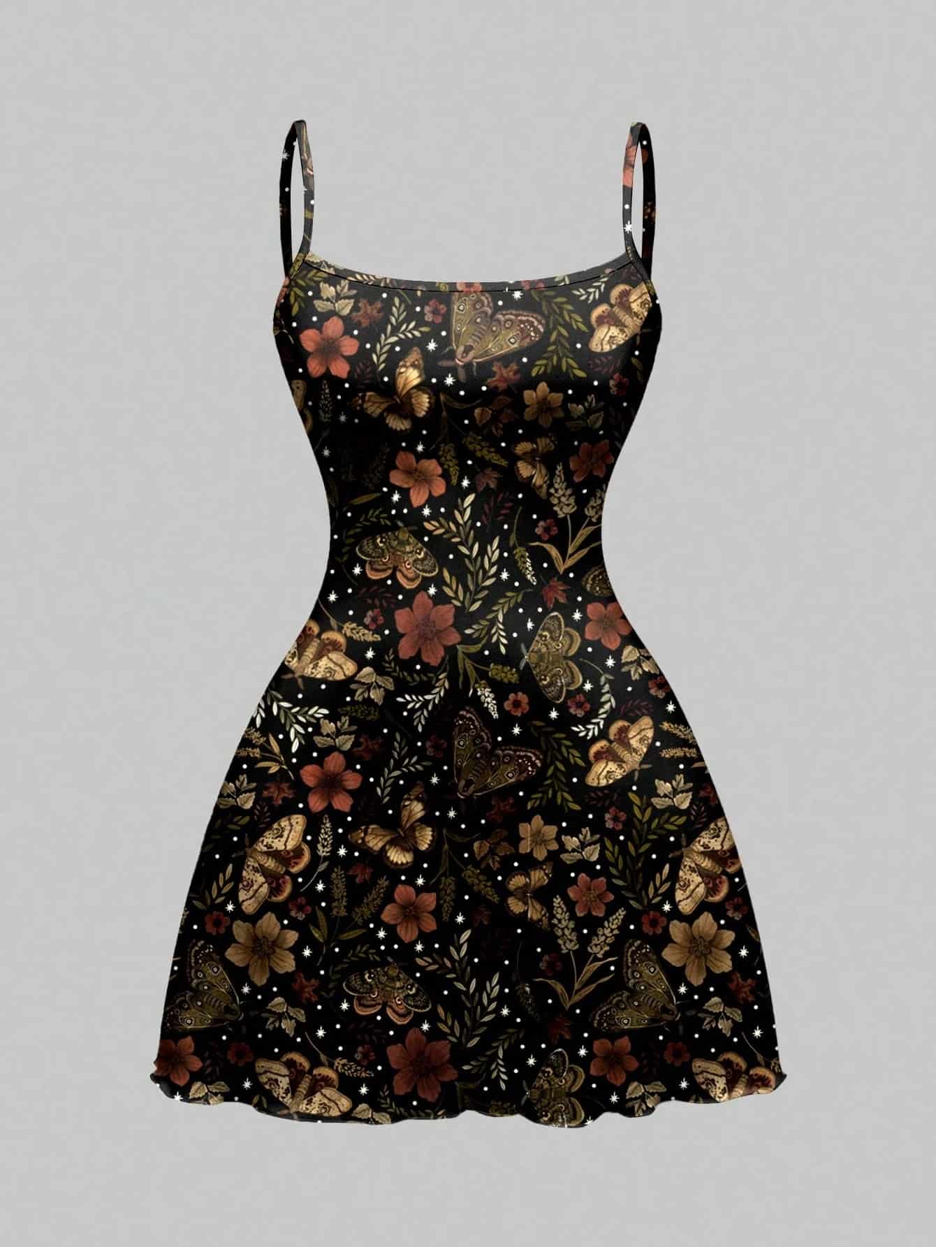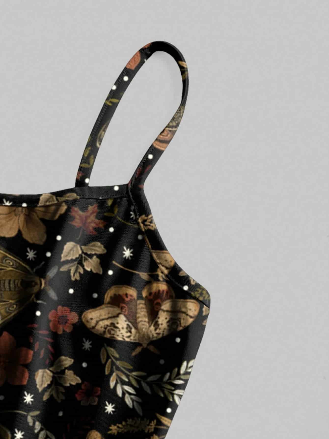 The Mothlight Garden dress is a tribute to the magic of the night. Its detailed pattern of butterflies, flowers and stars unfolds on a dark background like a nocturnal garden in the moonlight. The delicate spaghetti straps and feminine cut accentuate the silhouette, while the flowing material ensures gentle, elegant movement. A dreamy dress for anyone who loves the mystical and nature in equal measure.