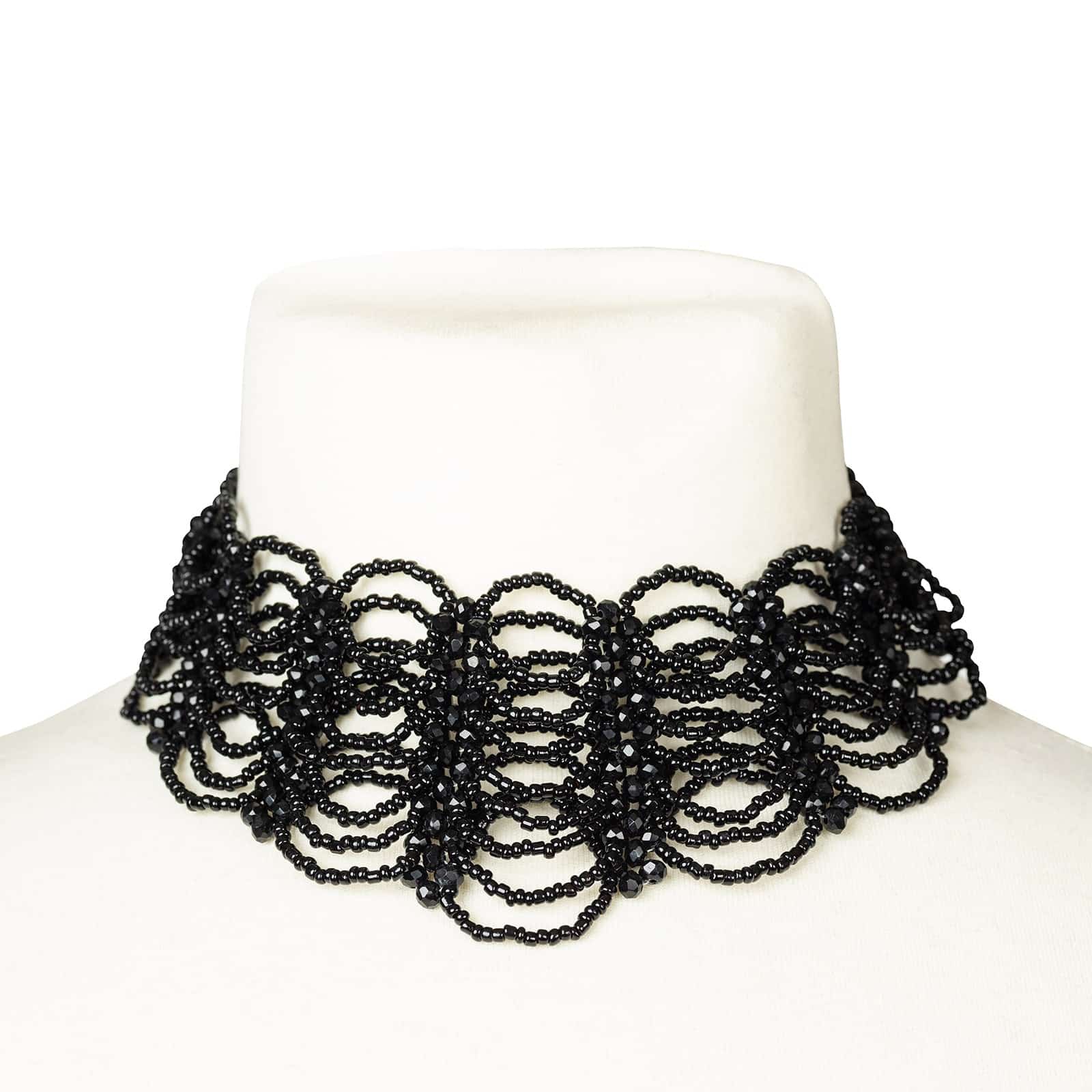 Luxurious Victorian necklace made from strands of glass beads that are combined into loops using diamond-shaped glass beads. This necklace is adjustable.