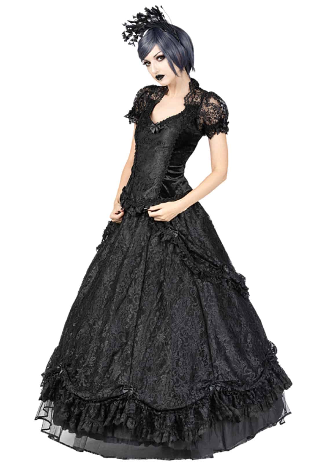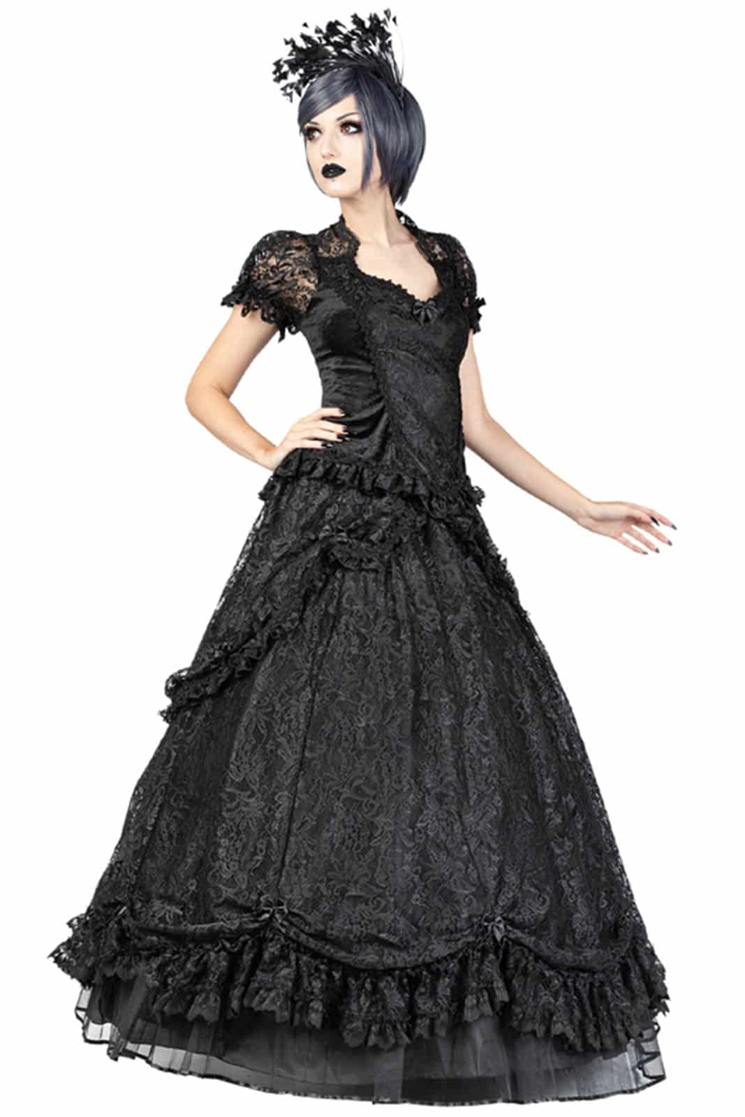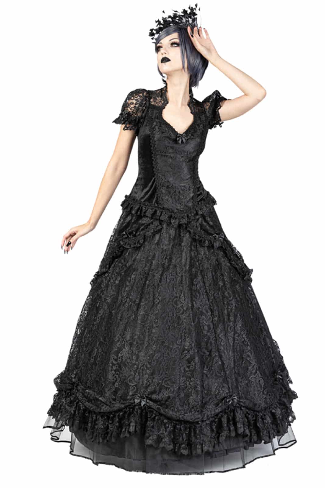 Layered Victorian skirt in Venetian lace. This lace skirt features a classic lace overlay with descending drape front to back, is gathered by large satin bows and adorned with a black lace ruffle edged with Venetian lace. The silky soft lining has a wide layer of stiffer tulle at the bottom to create full volume. The lower end of the lace skirt is adorned with a wide array of lace drapes gathered by black satin bows and trimmed with black venetain lace. The skirt has an elastic waistband for a comfortable fit and a concealed side zip fastening.