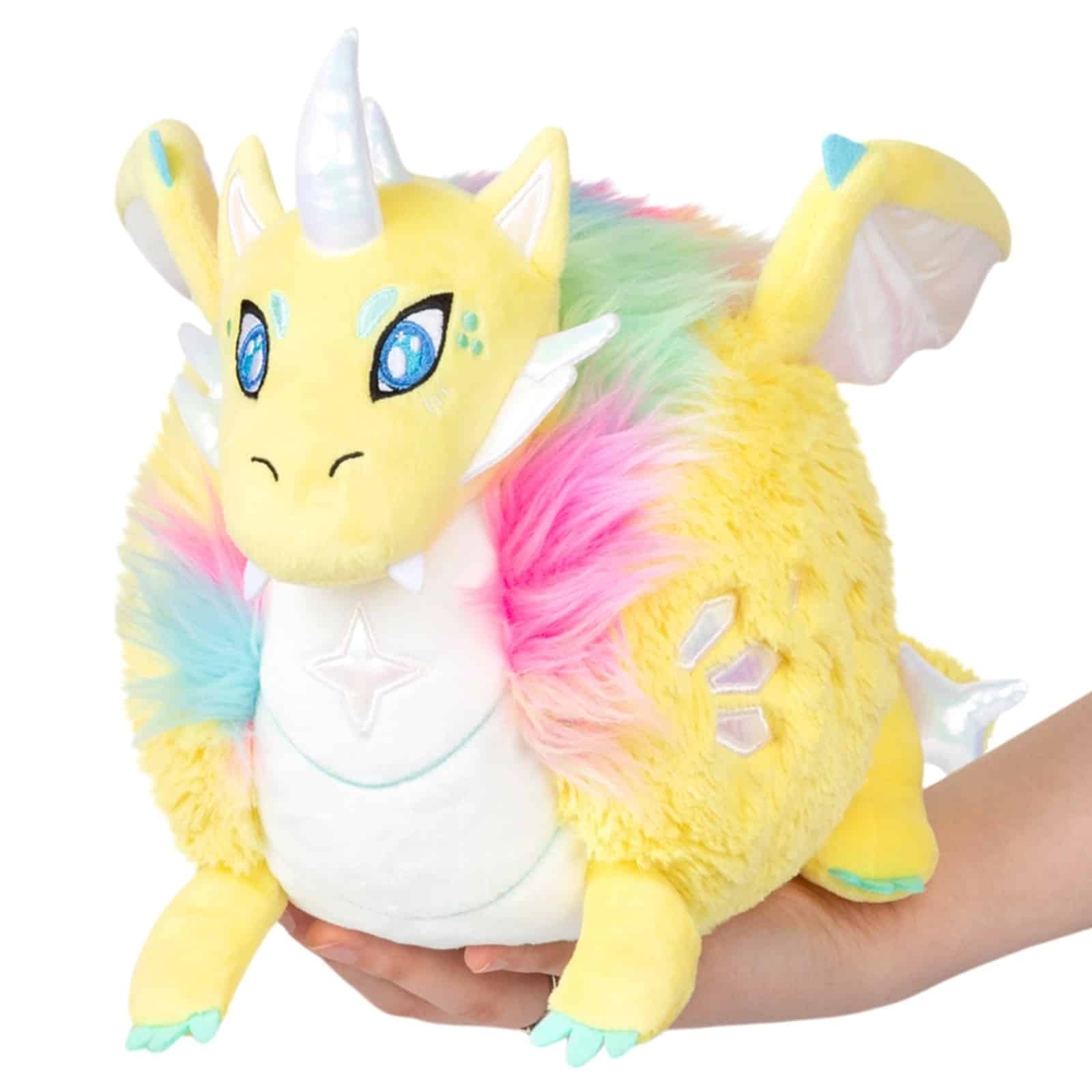 This magical plush toy brings rainbow sparkle into your life – the Prismatic Dragon from Squishable! With its bright yellow fur, colorful rainbow mane and sparkling details, it was specially designed for Pride Month 2023. His mission: to bring magic, love and harmony to the world. Cuddly soft, colorful and full of positive energy – a loyal companion for day and night. In collaboration with the Trevor Project, this dragon supports an important mission for more acceptance and diversity.