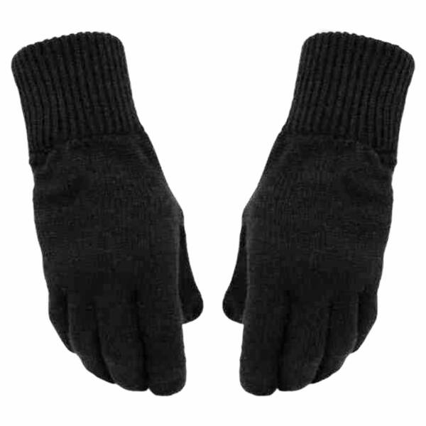Classic black closed finger gloves made of warm acrylic with cuffs.