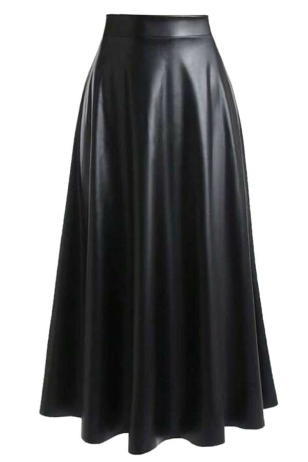 Ankle-length skirt made of stretchy material with an elastic waistband. The matt faux leather shimmers slightly and feels comfortable against the skin.